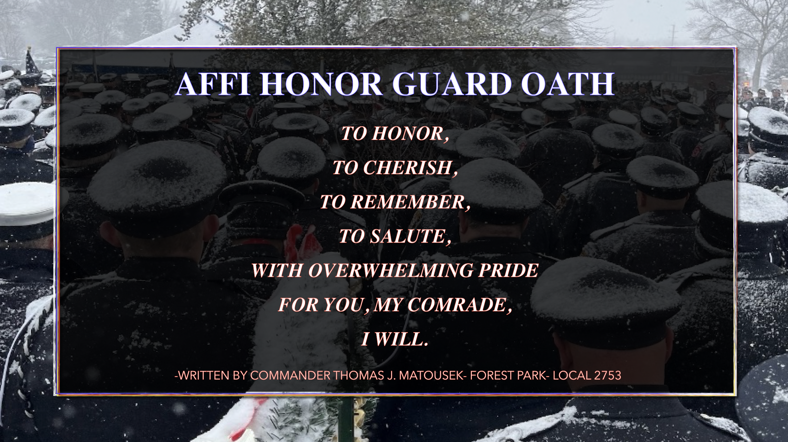 The AFFI Honor Guard Oath was Written by Commander Thomas J. Matousek, Forest Park Local 2753