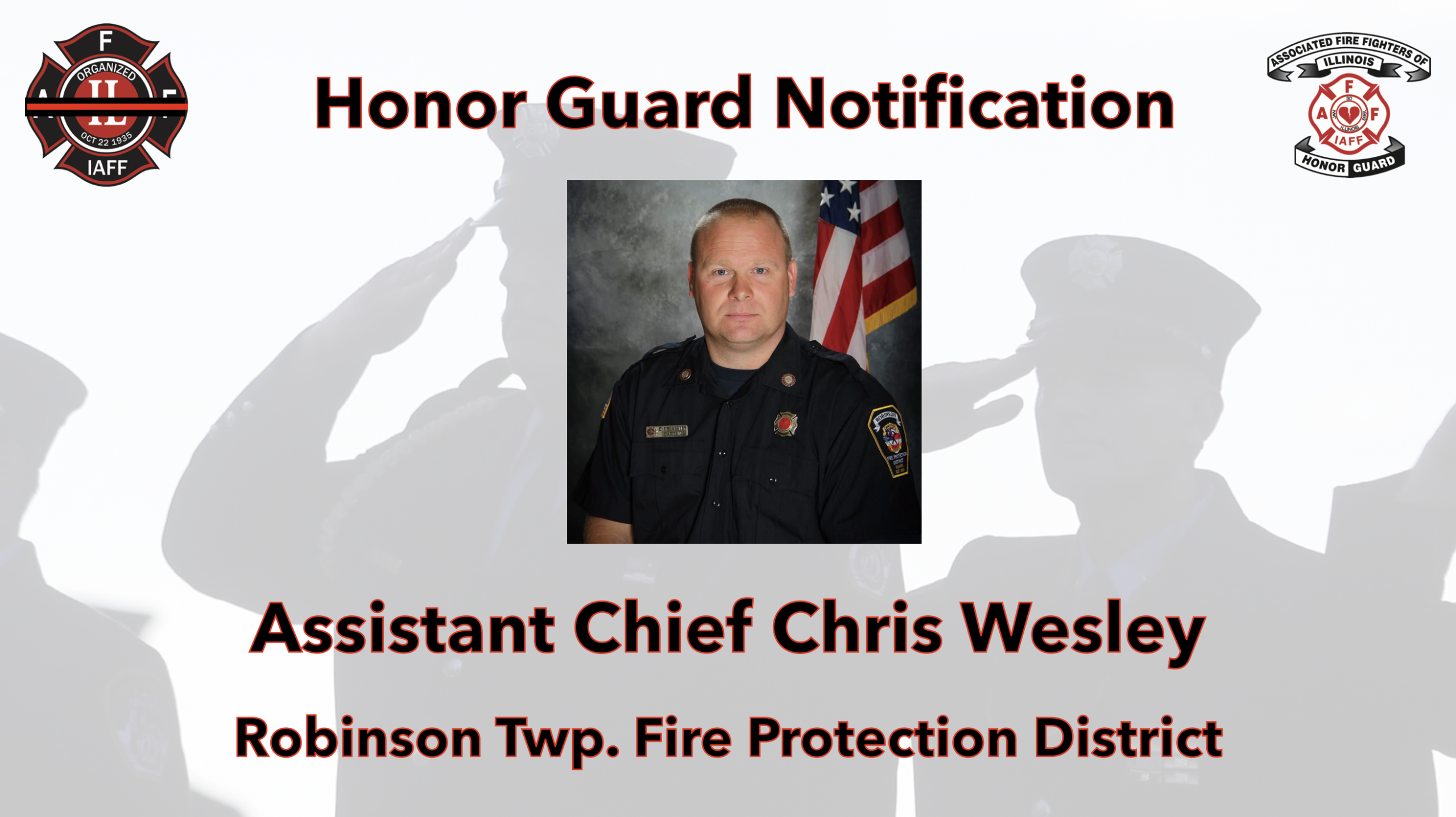 It is with great sadness that I inform you of the death of Assistant Chief Chris Wesley of Robinson Township Fire Protection District. Brother Wesley passed away unexpectedly on Wednesday, December 10th, 2025. He was promoted out of Robinson, Local 3458, but was a very active member of the Local, serving as President for many years, prior to his promotion.